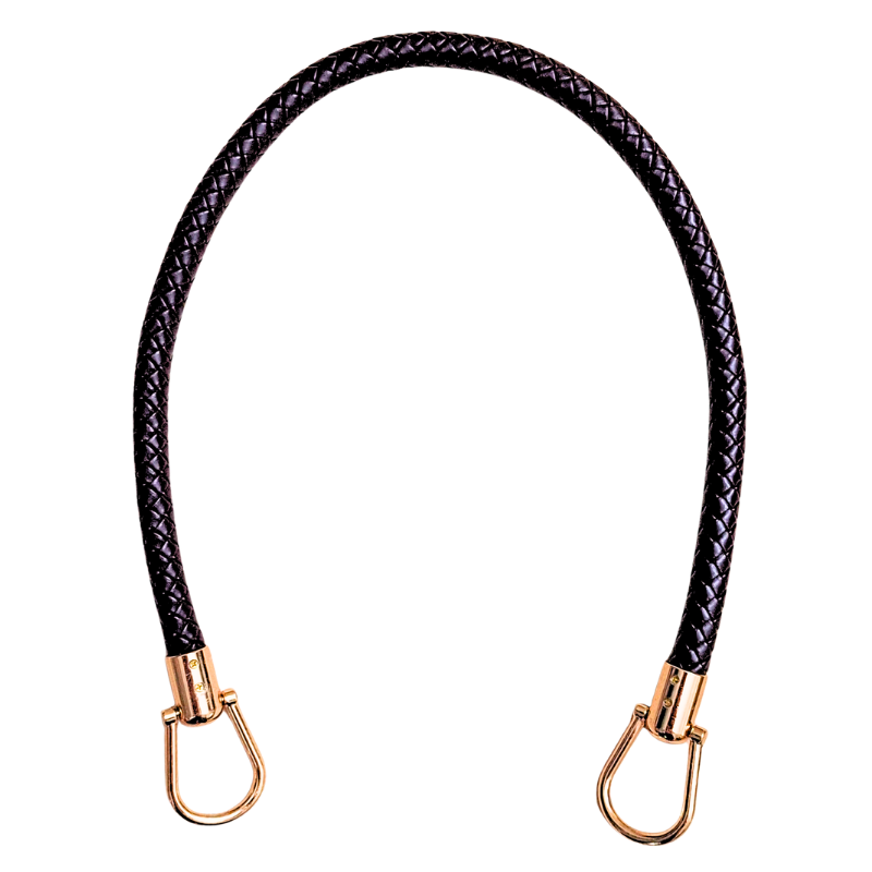 Alça trançada em material sintético com acabamento preto e dourado e 60cm de comprimento.