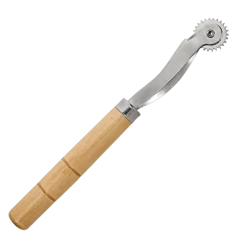 Corpo produzido em metal. Cabo reforçado de madeira.