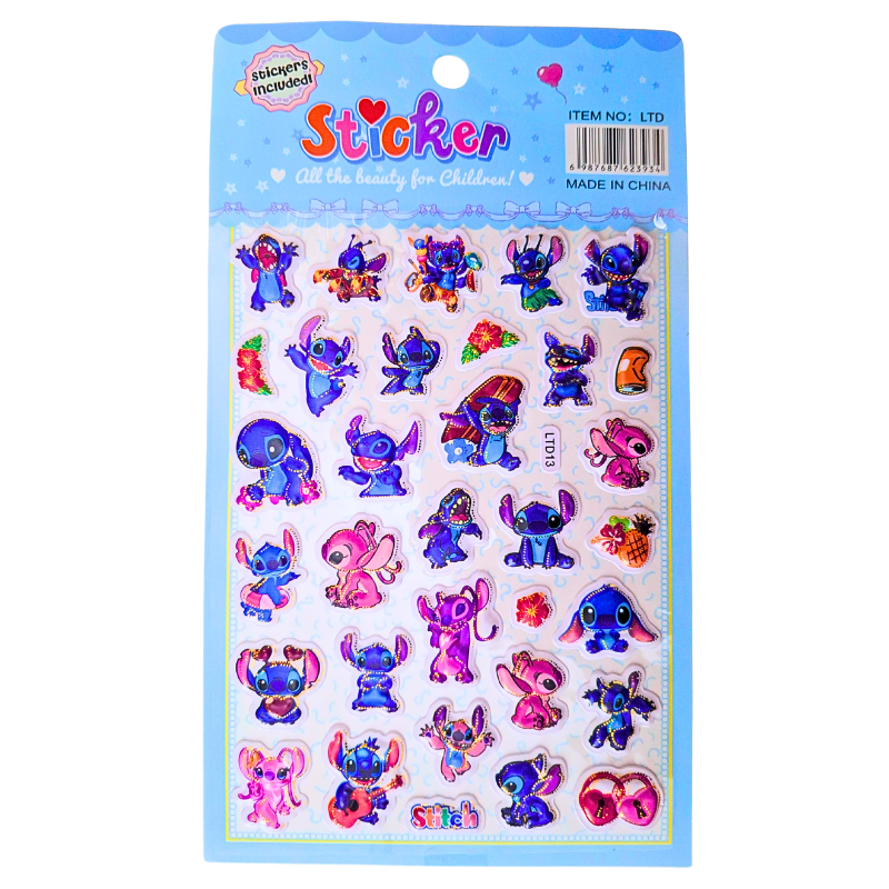 A Cartela de Adesivos 3D do Stitch é a escolha perfeita para quem adora itens de papelaria divertidos e cheios de personalidade.
