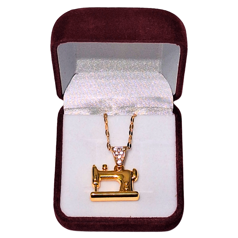 Corrente com pingente máquina de costura dourada, elegante e versátil.