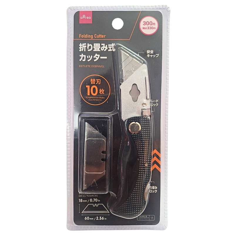 Seu design dobrável garante segurança no transporte e armazenamento, enquanto as 10 lâminas extras oferecem durabilidade e praticidade. Possui um clipe para utilização em cinto.