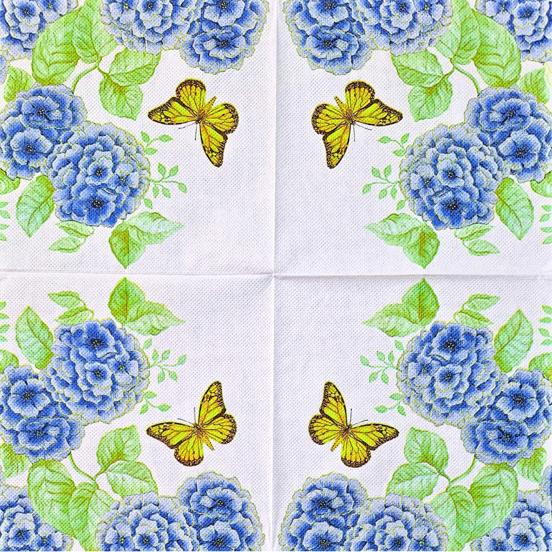 Tema: Hortênsias Azuis e Borboleta.