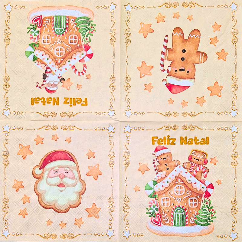 Tema: Natal Modelo 16 (Papai Noel e Biscoitos de Gengibre / Ginger / Feliz Natal).