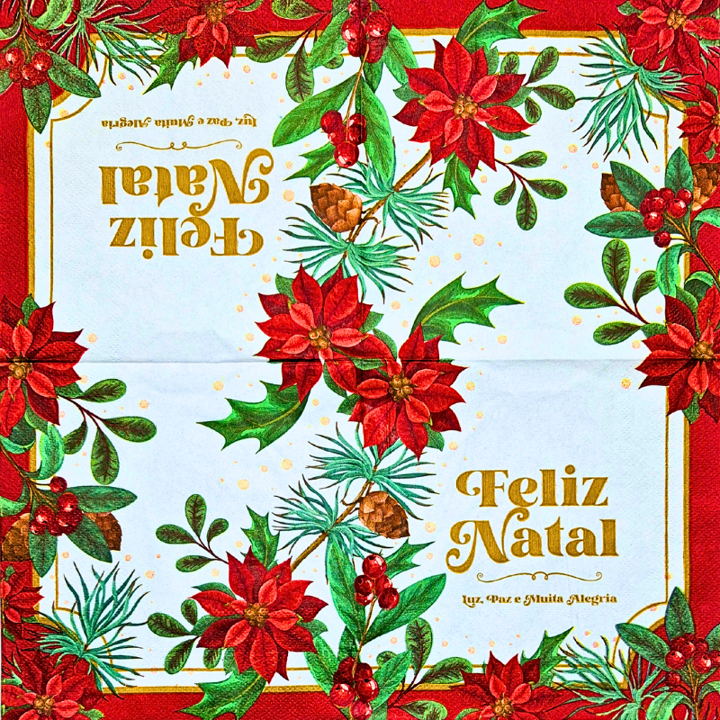 Tema: Natal Modelo 26 (Floral Feliz Natal, Luz, Paz e Muita Alegria).