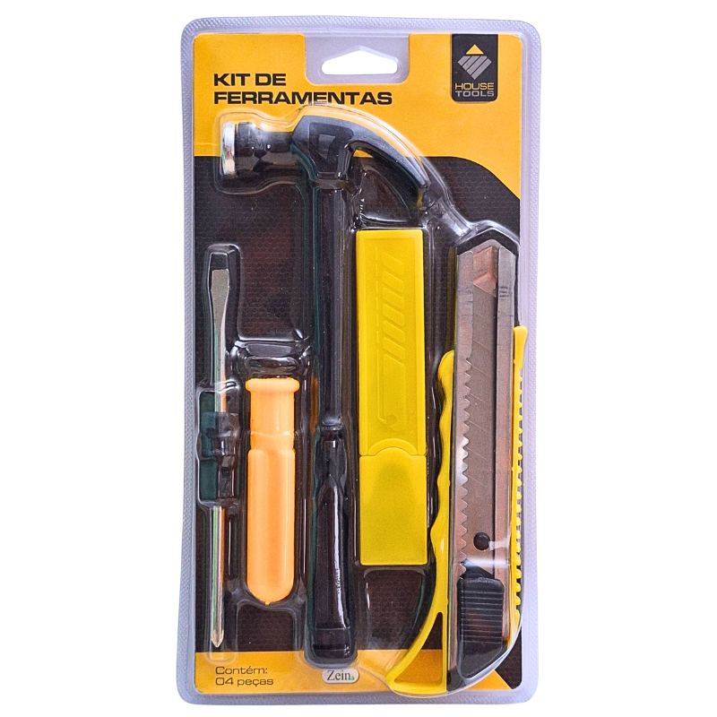 O kit de ferramentas com martelo, chave reversível e estilete com lâmina extra é a solução prática para pequenos reparos, montagens e ajustes domésticos.
