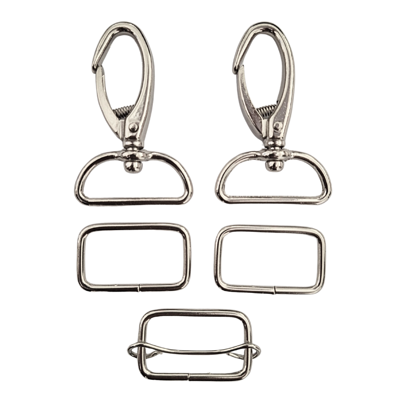 Este kit de ferragens é ideal para confecção de bolsas, sacolas e similares com alça de 30mm.