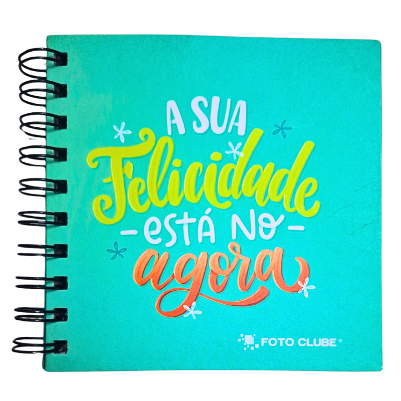 Modelo 5 (Capa com frase "A sua felicidade está no agora". Contracapa com cachorrinho fofinho).
