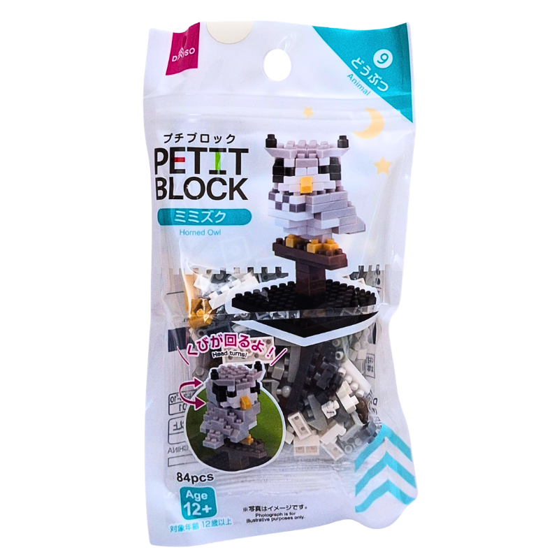 Monte e se divirta com o Mini Blocos de Montar Petit Block Coruja de Chifres, parte da coleção Animais.