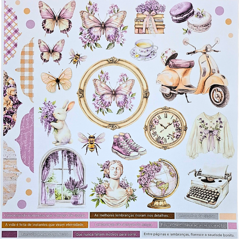 Papel dupla face estampado ideal para scrapbook, colagens, cartões, papelaria criativa e projetos artesanais.
