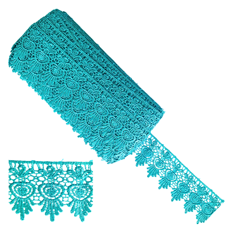 Renda guipir encorpada e delicada, ideal para acabamentos refinados em costura, artesanato, moda e decoração. Possui excelente definição de desenho, resistência e ótimo caimento.